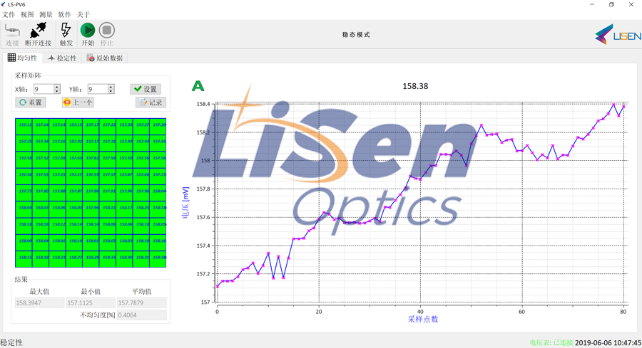 4. 实现了太阳模拟器器辐照度均匀性、不稳定性功能测量