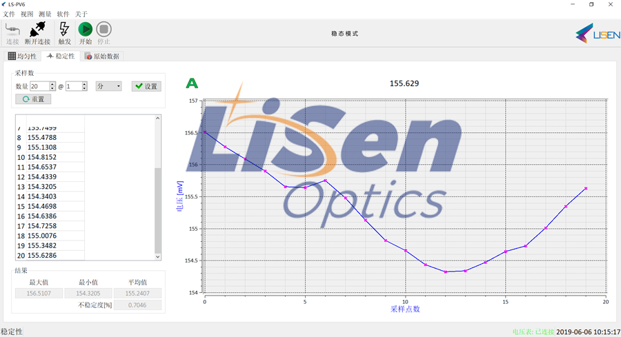 3. 实时采集显示太阳模拟器辐照度转换电压*、*小值、平均值