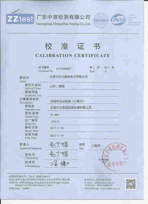 前段时间艾思荔冷热冲击试验箱(三箱式)等设备再次入驻文登卡尔马斯特,感谢客户的支持与信任。