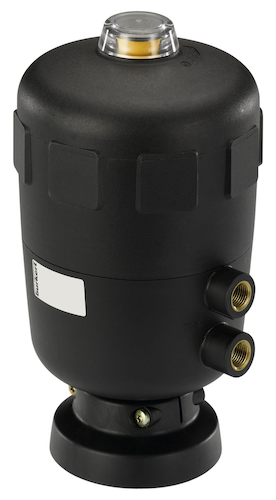 气动旋转驱动装置2050球阀是由一个单作用或双作用的气动线性活塞驱动装置构成,具有一个用于连接旋转件的内部粗牙螺纹联轴器以及一个符合 DIN 3337 和 ISO 5211 的通用机械接口。当活塞在控制空气的压力作用下或在复位弹簧的弹力作用下做线性运动时,驱动轴会在粗牙螺纹联轴器的作用下旋转 90°。该旋转运动可用于操作相应的调整元件,比如球阀、活瓣等。驱动装置具有一个用于显示活塞位置的光学指示器。所用的材料同样适合恶劣的、具有轻微侵蚀性的环境条件。为了确保旋转驱动装置的功能完整性,要求一个 2 bar(SFI)或 3.5/4.0 bar(SFA,参见技术数据)的低控制压力。驱动装置免维护。