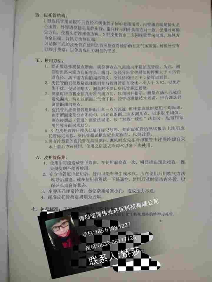 首先皮托管分为S型和L型皮托管。具体使用方法及注意事项请参照以下实物图片!