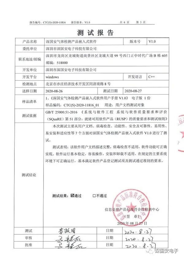 热烈祝贺深国安的软件产品,顺利通过电子技术标准化研究的*测试!