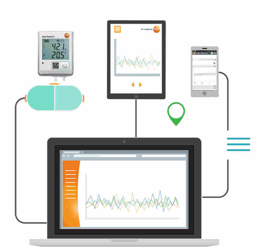 testo Saveris 利用WiFi型无线温湿度监测系统,只要配置记录仪和WiFi环境,即可让您快速的获取冷藏冷冻及冷链车箱的温湿度数据,并收到实时报警及数据报告,在办公室即可无忧地掌握一线数据。有效降低了生鲜产品的损耗,实现了“ 0 断链”、“ 0 腐损”,形成了完整的冷藏服务供应链。