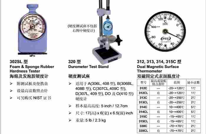 306L硬度计|PTC-306L美国PTC指针式橡胶硬度计,A型,达到或过了目前美国ASTM D2240和ISO 868规格的A型durometers 。 306L措施的压痕硬度的橡胶制品,橡胶及其他橡胶类物质,如氯丁橡胶,有机硅,乙烯,腈,并正丁酯。它也可用于软塑料,觉得,皮革,和类似的材料。