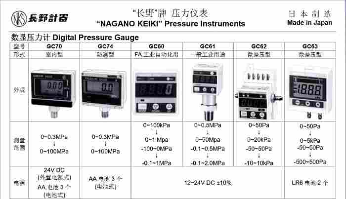 日本长野计器NAGANO KEIKI GC74数字压力表