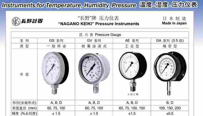日本长野计器NAGANO KEIKINKS A□10A□15一般工业用压力表