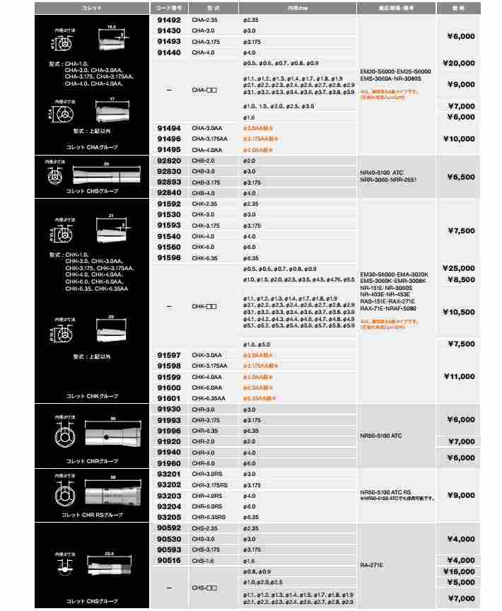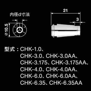 标准有:CHK-2.35・CHK-3.0・CHK-3.175・CHK-4.0・CHK-6.0・CHK-6.35・CHK-□□・CHK-3.0AA・CHK-3.175AA・CHK-4.0AA・CHK-6.0AA・CHK-6.35AA