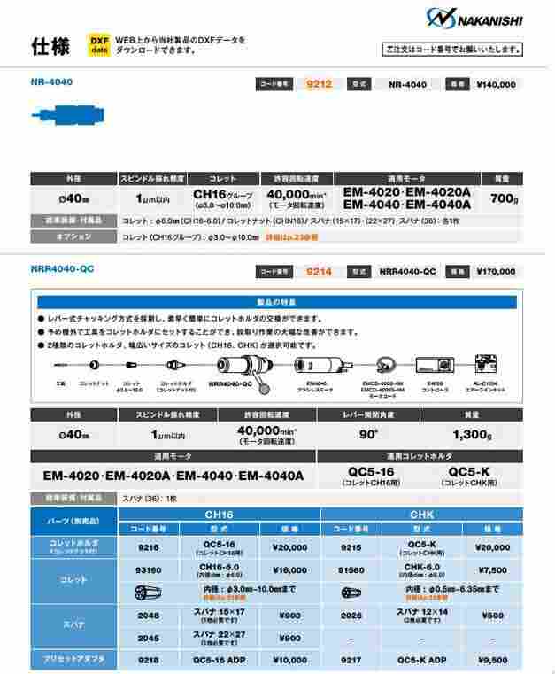 NRR4040-QC日本Nakanishi高速主轴NRR4040-QC