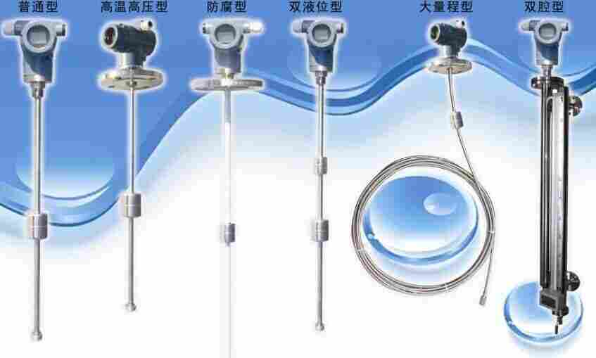 SX-ZNCY磁致伸缩液位计由三部分组成:探测杆,电路单元和浮子组成。具有HART协议,可远程调整零点和量程。也可通过机壳内三个按键与LCD液晶进行各种参数调整。可组态的参数包括单位、显示上下限、阻尼、平移修正、校准上下限、数模微调校正、恢复出厂设定。该液位计测量时,电路单元产生电流脉冲,该脉冲沿着磁致伸缩线向下传输,并产生一个环形的磁场。在探测杆外配有浮子,浮子沿探测杆随液位的变化而上下移动。由于浮子内装有一组永磁铁,所以浮子同时产生一个磁场。当电流磁场与浮子磁场相遇时,产生一个“扭曲”脉冲,或称“返回”脉冲。将“返回”脉冲与电流脉冲的时间差转换成脉冲信号,从而计算出浮子的实际位置,测得液位。
