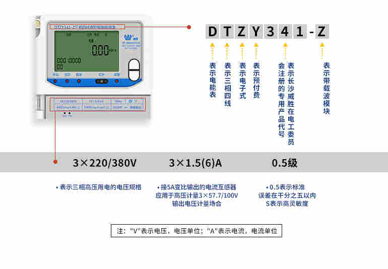 DTZY341-Z是由湖南威胜生产的一款三相四线带载波功能的预付费智能电表,具体参数如下: