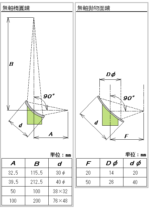 无轴椭圆镜・抛物面镜
