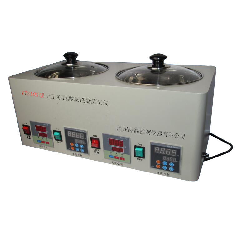 本仪器用于土工合成材料抗酸碱液性能试验方法,本机具有搅拌功能,容器内的溶液在加热的同时能不断被搅拌,使容器内部的溶液能充分混匀,使实验结果更加准确。