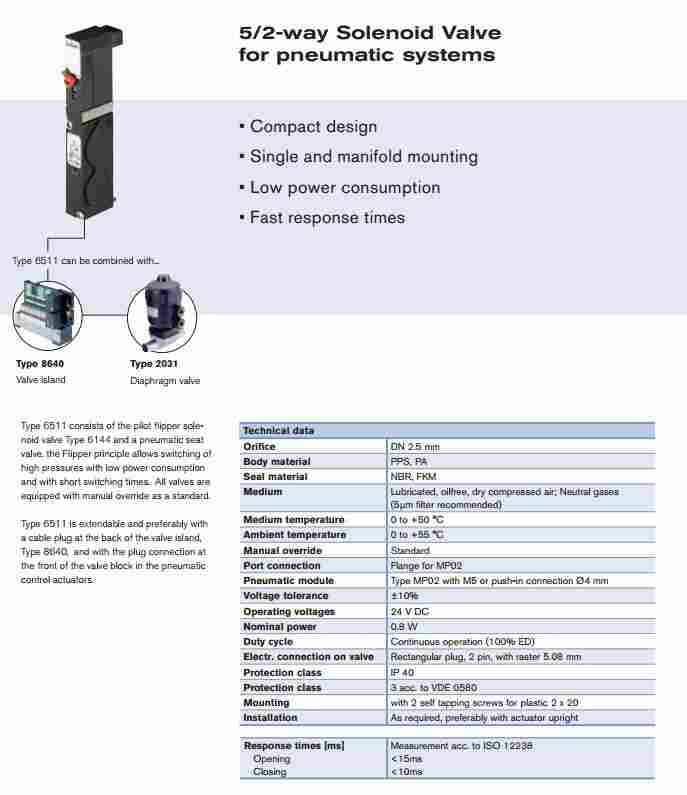 办事处供应burkert 6511气动电磁阀 Type 6144 und einer pneumatischen Ventilsitz . den Flip-Prinzip erlaubt das Schalten hoher Drücke bei geringer Leistungsaufnahme und mit kurzen Schaltzeiten . 办事处供应burkert 6511气动电磁阀 Alle Ventile sind mit Handbetätigung als Standard ausgestattet. 办事处供应burkert 6511气动电磁阀Typ 6511 ist ausziehbar und vorzugsweise mit einem Kabelstecker an der Rückseite der Ventilinsel , Typ 8640, und mit der Steckverbindung an der Frontseite des Ventilblocks in den pneumatischen Stellteilen .