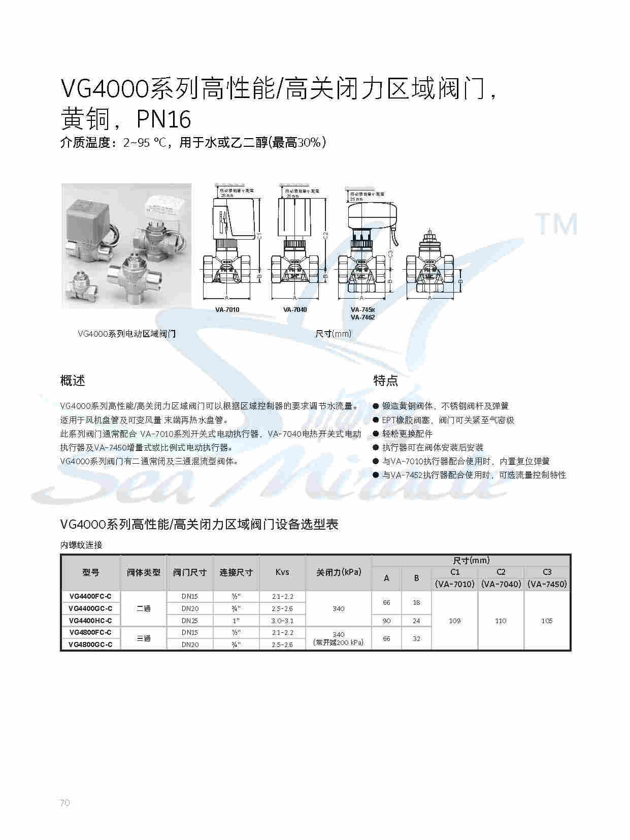 Johnson江森 VG4400GC-C 风机盘管电动二通调节阀门铜DN20