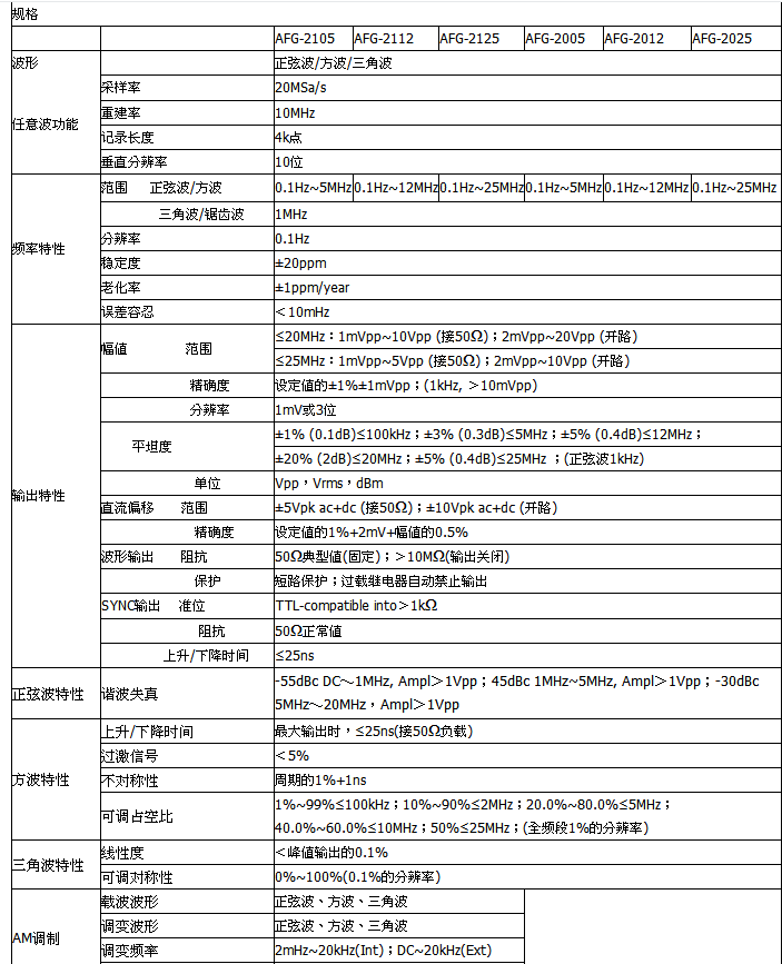 * AM/FM/FSK调变信号,扫描和计频功能(仅AFG-2100系列)