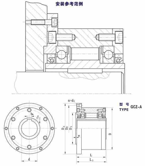 GCZ-A系列为滚柱式单向离合器。内含轴承支撑及油封,使用2只160系列滚珠轴承支撑,出厂时内含 润滑油。