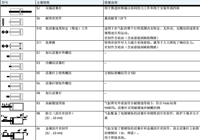 工作方式 • 气缸带弹性塑料终端位置缓冲 • 气缸带自调节终端位置缓冲 • 气缸带带可调终端位置缓冲