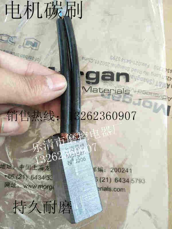 D电化石墨(主要成分是碳黑、焦碳和石墨等各种碳素粉末材料组成) 广泛用于各类交直流电机不但寿命长,而且对换向器的磨损小。 D后的位数字表示: 1- 代表石墨基(即原材料以石墨为基础); 2- 代表焦炭基(即原材料以焦炭为基础); 3- 代表炭黑基(即原材料以炭黑为基础); 4- 代表木炭基(即原材料以木炭为基础);其余数字为顺序号。 例如:D172(NCC634) J金属石墨,含铜(银)等(以前为T开头) J后位数字表示: 1- 代表无粘结剂电刷; 2- 代表有粘结剂电刷。其余数字为顺序号。 例如:J151HT,适用于高负荷和换向要求不高的低电压电机 R树脂粘合石墨类所有碳刷字尾M、NM、L、N、F、S、Y分别表示刷体浸渍的不同有机物。 4.碳刷的更换 1.在碳刷上部低于刷握或与刷握一样平时应立即更换。 2.磨损严重(不足原长的1/3) 3.碳刷与滑环接触面不足70%。 5.碳刷的订货须知(东方一力) 1、用户在订购电刷产品时,应先注明订货图号,电刷的型号和规格,并提出需要数量及供货时间要求。特殊规格和结构的电刷,用户需提供图纸或实样。 2、电刷型号与规格繁多,加工中有一定损耗,因此交货时有一定的加减数,尤其批量较少的订货,加减幅度较大。 3、特殊要求(形状)电刷(如进口电机),首次订购须付一定数量的开模费用,加工数达到一定量(一般为5000只)后,返还开模费用。
