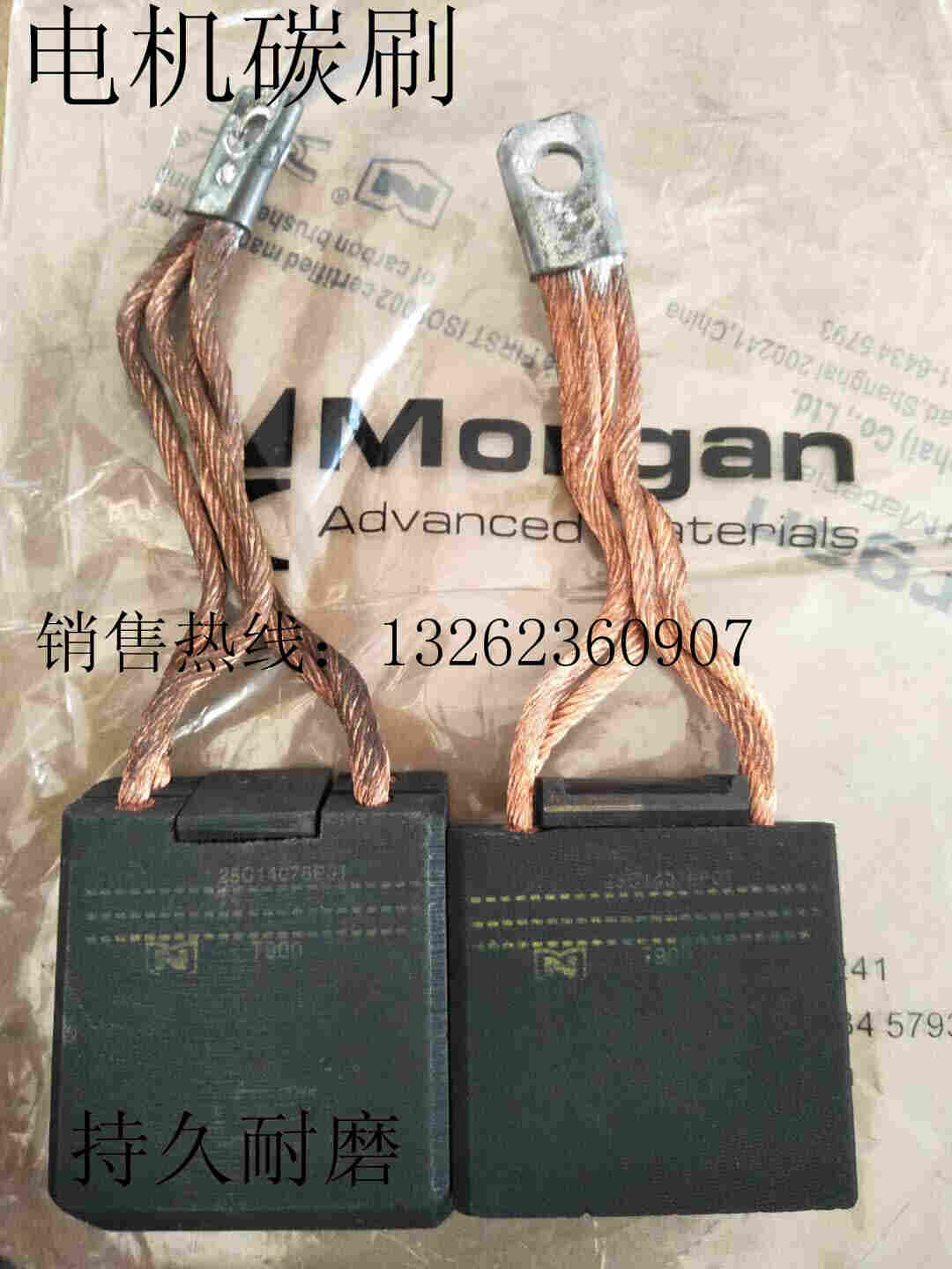 D电化石墨(主要成分是碳黑、焦碳和石墨等各种碳素粉末材料组成) 广泛用于各类交直流电机不但寿命长,而且对换向器的磨损小。 D后的位数字表示: 1- 代表石墨基(即原材料以石墨为基础); 2- 代表焦炭基(即原材料以焦炭为基础); 3- 代表炭黑基(即原材料以炭黑为基础); 4- 代表木炭基(即原材料以木炭为基础);其余数字为顺序号。 例如:D172(NCC634) J金属石墨,含铜(银)等(以前为T开头) J后位数字表示: 1- 代表无粘结剂电刷; 2- 代表有粘结剂电刷。其余数字为顺序号。 例如:J151HT,适用于高负荷和换向要求不高的低电压电机 R树脂粘合石墨类所有碳刷字尾M、NM、L、N、F、S、Y分别表示刷体浸渍的不同有机物。 4.碳刷的更换 1.在碳刷上部低于刷握或与刷握一样平时应立即更换。 2.磨损严重(不足原长的1/3) 3.碳刷与滑环接触面不足70%。 5.碳刷的订货须知(东方一力) 1、用户在订购电刷产品时,应先注明订货图号,电刷的型号和规格,并提出需要数量及供货时间要求。特殊规格和结构的电刷,用户需提供图纸或实样。 2、电刷型号与规格繁多,加工中有一定损耗,因此交货时有一定的加减数,尤其批量较少的订货,加减幅度较大。 3、特殊要求(形状)电刷(如进口电机),首次订购须付一定数量的开模费用,加工数达到一定量(一般为5000只)后,返还开模费用。