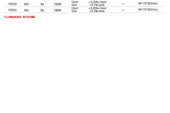 IT6700系列是经济的高性能数控电源,拥有业界高功率比,并具有宽广的电压电流使用率,一台电源可替代多种型号,大大提高了应用范围。以IT6720为例,100W的容量,可输出高60V与5A,并且还可以自动控制电压和电流的变化率,功率比达到三倍之多。一台机器可替代以往60V×1.6A / 32V×3A / 20V×5A三种机型,减少重复投资,大幅度节省成本和空间,在有限的预算下提供无限的满意,让客户轻松的替代传统数显电源。