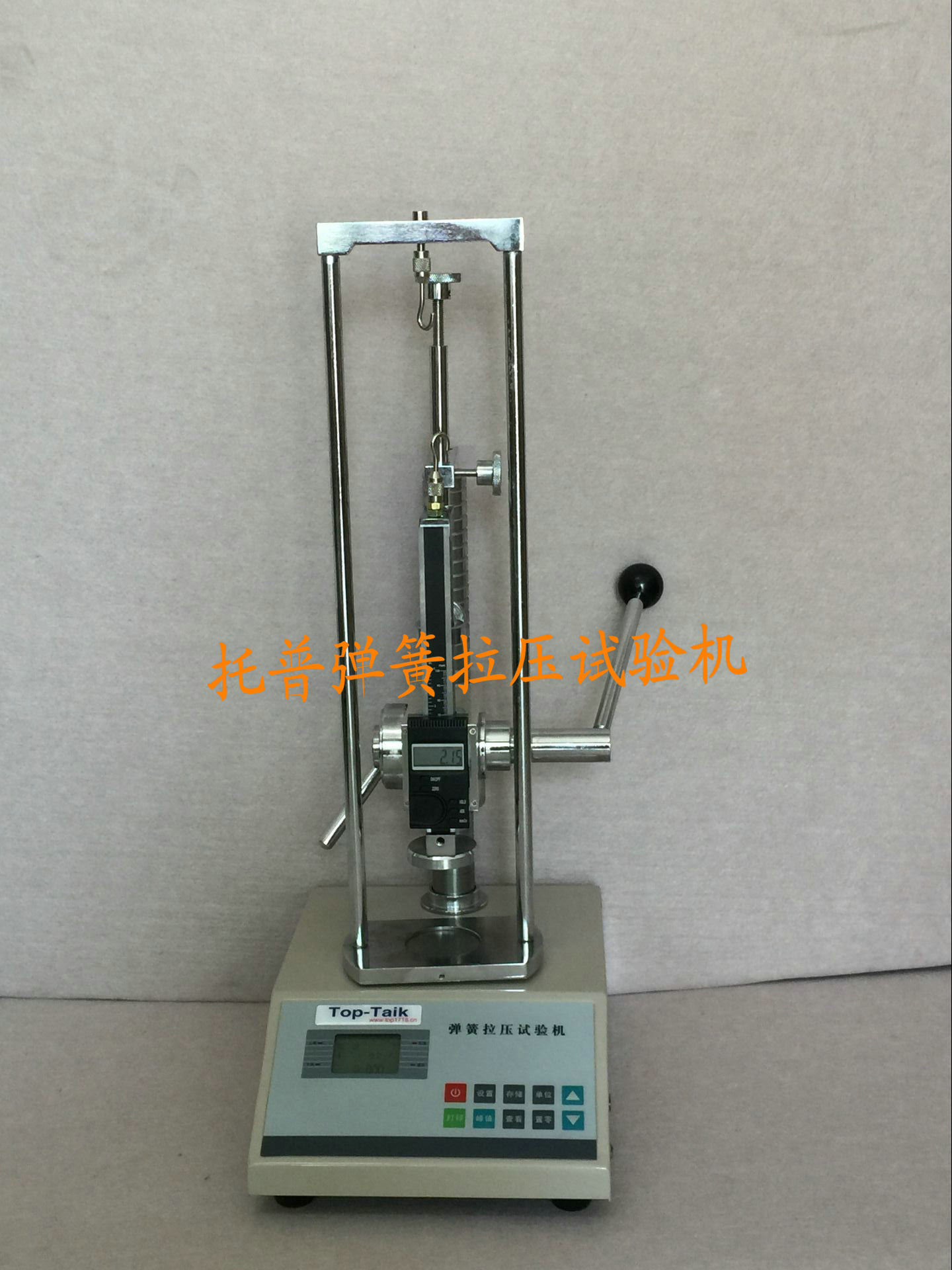 100N数显弹簧拉压力测试台,TOP-1K~5K电子数显弹簧拉压试验机是测试拉伸、压缩弹簧的变形量和负荷关系特性的仪器。适用拉伸、压缩弹簧的一定工作长度下的工作负荷的测试。