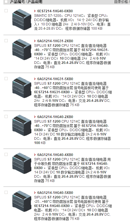 参数:SIMATIC S7-1200,CPU 1214C, 紧凑型 CPU,DC/DC/继电器, 机载 I/O: 14 个 24V DC 数字输入;10 DO 继电器 2A; 2 AI 0-10V DC, 电源:直流 20.4-28.8V DC, 程序/数据存储器 100 KB