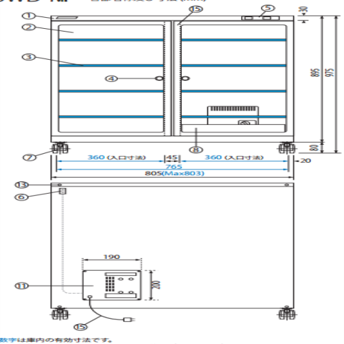 付属品:棚板5、トレー1、キー2、湿度計1