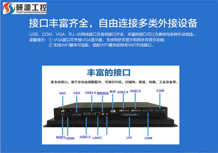 研源工控15寸双网口工业电脑一体机 嵌入式工控机触摸屏电脑材料采用金属压铸成型,体积轻巧、造型美观。达到军工级别.具备坚固、防震、防潮、防尘、耐高温多插槽和易于扩充等特点,是各种工业控制、交通控制、环保控制等自动化领域应用的佳平台。整机配置15”宽温、高亮度LED液晶显示屏,集成工业级低功耗嵌入式主板,支持SSD、HDD,具有多个I/O接口,电阻式触摸屏/电容式触摸屏可选; 15寸LED显示屏,并具有待机节能模式。支持定时唤醒功能。价格优惠 质量保证