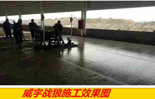 混凝土铺筑,在混凝土激光整平机整平头有效施工范围内,先用人工将混凝土初平至比地坪标高高1-2㎝(具体高度依混凝土坍落度而定),然后由威宇混凝土激光整平机一次性完成振捣、压实、整平工作。
