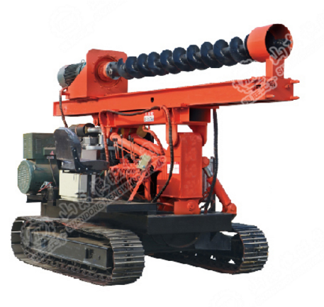 小型液压打桩机集钻孔机,装载机与一体,一机两用,大扭距移动灵活,全时四驱设计,适用多种复杂地形。孔速度快,定点方便,操作简单,垂直提土大程度的减少土的回落,可在黄土层,风化岩层,冻土层,灰土层,沙石层等多种复杂土层下轻松作业。