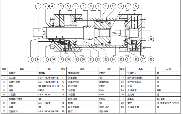 液压缸基本上由缸筒和缸盖、活塞和活塞杆、密封装置、缓冲装置