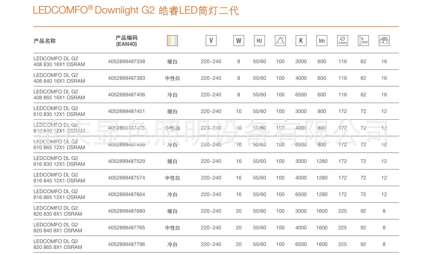LEDCOMFO DL G2 408 830 16X1 OSRAM (4寸,8W,3000K)