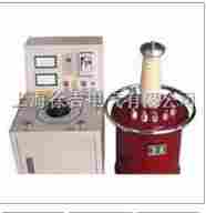 把电源输入有过流自动脱扣及防止突发加压的零位连锁装置的操作箱,经自耦调压器调节电压输入试验变压器初级绕组,根据电磁感应原理,在次级(高压)绕组按其与初级绕组匝数之比可获得同等倍数的电压幅值-工频高压。此工频高压经高压硅堆整流及稳压电容器滤波可取得直流高压,其幅值是工频高压有效值的2倍。