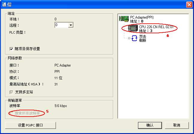 6、用鼠标双击“双击刷新”搜索所连接网络上的 S7-200 站。