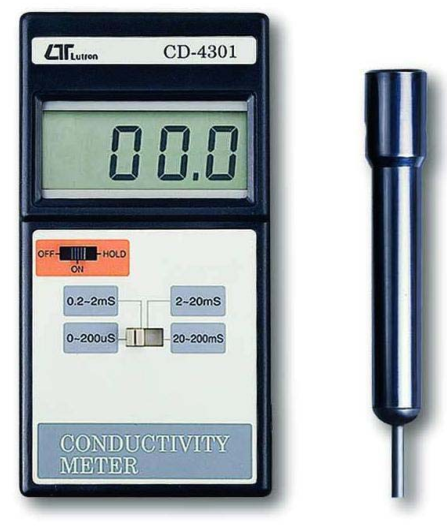 路昌电导仪CD4301电导率计 产品系数 测量范围 : 0.1~199.9uS , 0.2~1.999mS , 2~19.99mS , 20~199.9mS 度 : ±1% 具有自动温度补偿功能 具读值锁定功能 尺寸: 168x80x35mm