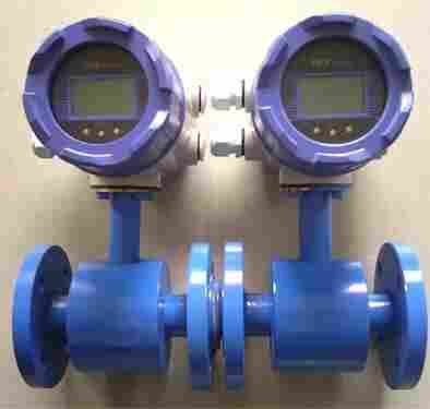 根据法拉第电磁感应原理,在与测量管轴线和磁力线相垂直的管壁上安装了一对检测电极,当导电液体沿测量管轴线运动时,导电液体切割磁力线产生感应电势,此感应电势由两个检测电极检出,数值大小与流量成正比例,其值为: