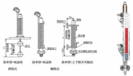 注:1、侧装式采用不锈钢材质时,测量范围等于安装间距。采用PP材质时,翻柱显示范围=安装间距L-150mm。