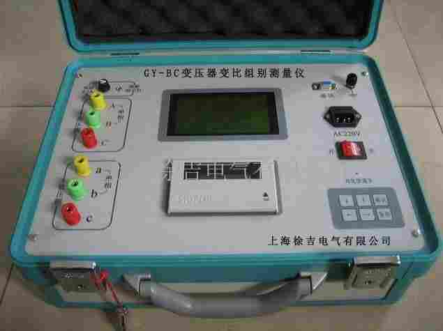 GY-BC 变压器变比组别测量仪是上海徐吉电气有限公司生产销售 GY-BC 变压器变比组别测量仪,用变比电桥测量变压器的变比,操作过程繁琐,测量范围狭窄,已经不适应现代测量的快节奏、高效率的要求。为此,我公司采用现代电子技术,研制出了新一代变压器变比组别测试仪。它体积小,重量轻,精度高,稳定性好。本全自动变比组别测试仪采用了大屏幕汉字显示、菜单操作,界面友好。变比组别可一次测完。该变压器变比组别测试仪是电力工业部门的理想测试仪器。