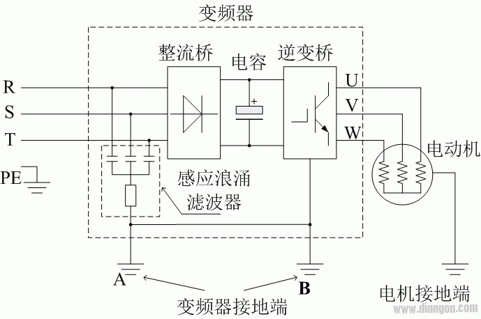 中间电路滤波电容:又称电解电容,该电容的作用:滤除整流后的电压纹波,还在整流与逆变器之间起去耦作用,以消除相互干扰,还为电动机提供必要的无功功率,要承受极大的脉冲电流,所以使用寿命短,因其要在工作中储能,所以必须长期通电,它连续工作产生的热量加上变频器本身产生的热量都会加速其电解液的干涸,直接影响其容量的大小。正常情况下电容的使用寿命为5年。建议每年定期检查电容容量一次,一般其容量减少20%以上应更换。