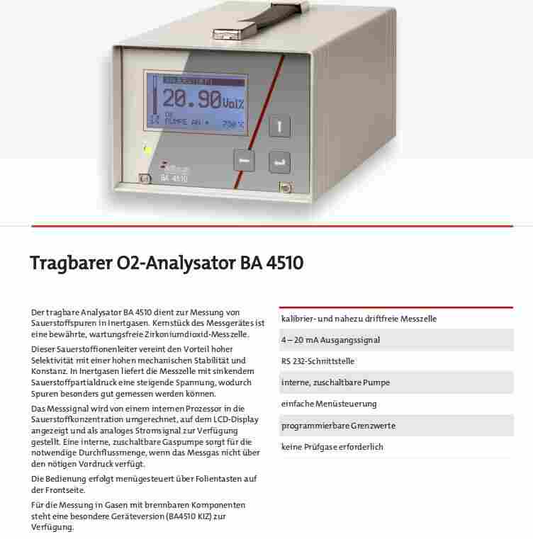 德国Buehler便携式锆氧分析仪BA4510注意事项