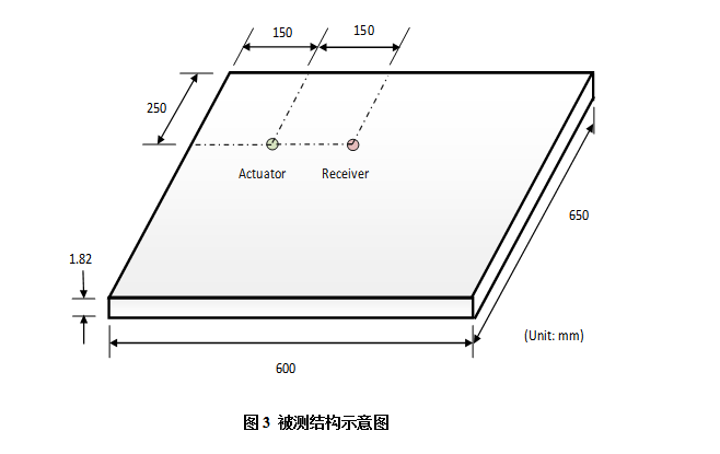 实验过程(2): 通过对面积较大的板状结构进行测试,被测结构示意图如下: