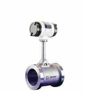当介质以一定速度流过三角柱体时,在三角柱体两侧后面产生一个交替排列的旋涡带,称之为“卡门旋涡”,由于旋涡发生体两侧交替产生旋涡,于是在发生体两侧产生压力脉动,从而使检测体产生交变应力,封装在检测探头体内的压电元件在交变应力的作用下,产生与旋涡同频率的交变电荷信号,放大器将这种电荷信号进行放大、滤波、整形,后输出与介质流速成正比的脉冲信号,送至积算仪进行处理和显示。