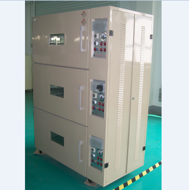 四、三箱式真空烘箱优势与特点:对开门真空烘箱,一般是三层,可以镶在干燥车间和注液车间之间的墙上。干燥车间将物料放入烘箱,完成烘烤后可以直接从注液车间一侧取出,注液。提高了流转效率,更重要的是避免了从真空烘箱取出物料运送至另一个车间中环节中水分再次浸入的可能性。