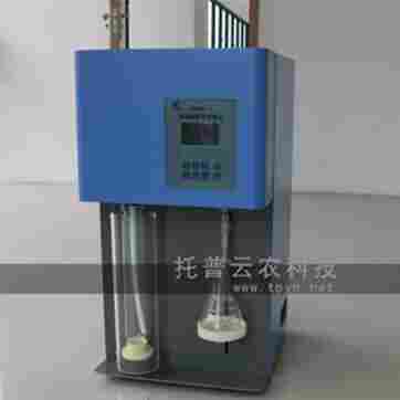 自动定氮仪用凯氏方法检测谷物、食品、饲料、水、土壤、淤泥、沉淀物和化学品中的氨、蛋白质氮含量、酚、挥发性脂肪酸、氰化物、二氧化硫、乙醇等含量。广泛用于食品、农作物、种子、土壤、肥料等样品的含氮量或蛋白质含量分析。自动定氮仪以国际凯氏定氮法为依据,进行设计制造的,此仪器主机采用蒸气自动控制发生器,在液位稳压器的配合下,使蒸气在数十秒时间内平稳输出供蒸馏器使用。执行机关控制下的碱液流经蒸馏管进入定量消化管,使固定在酸液里的氨在碱性条件下挥发。第二执行机关控制下的蒸气对碱性条件的试样再进行蒸馏,使氨挥发,挥发的氨被冷凝器冷凝下来,完全地被固定在硼酸之中,然后用标准酸对其滴定到终点,计算出氮的含量,再乘以换算蛋白质的系数得出蛋白质的含量。
