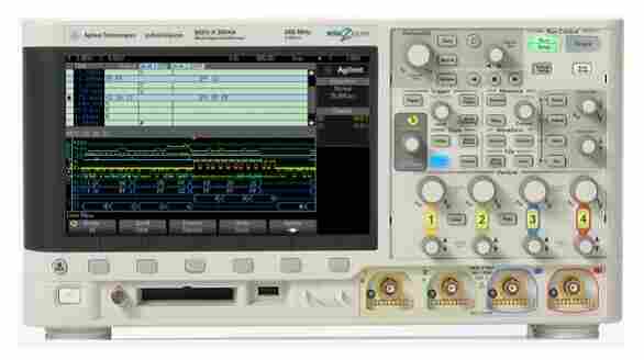 Agilent InfiniiVision 3000 X 系列示波器具有100 MHz ~500 MHz 的带宽,以及越模拟示波器的波形捕获率,高达1百万个波形/秒,配合可变余辉等显示方式,揭开了数字示波器的新篇章。首次,而且是以选件的形式,将16个逻辑分析仪通道、函数信号发生器和串行协议解码(用硬件实现)集成到同一台示波器中。
