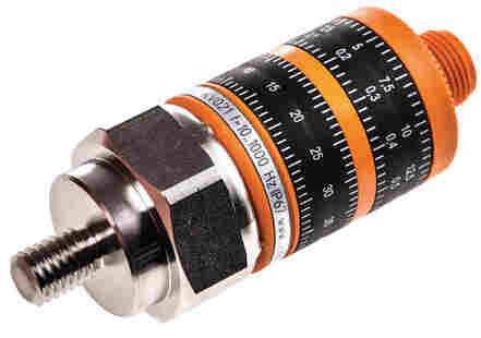 振动监控器, 通过M12接插件连接, 符合DIN ISO 10816标准的振动监控器, 测量范围veff: 0...25 mm/s, 开关输出NC DC PNP和模拟输出 4...20 mA