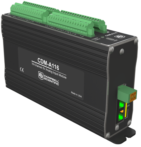 CDM-A116 有16个差分输入,4个激发通道,两个12 V端口,两个开关12 V端口,和四个开关5 V端口。