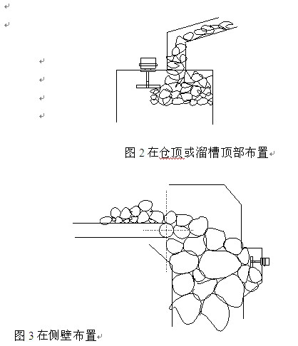 本装置可垂直安装在料仓、料堆、溜槽顶部或水平安装在侧壁。见图2、3。