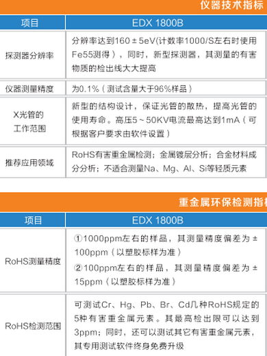 1. 经过优化光路的改善,产品测试通道上增加到了从Cl-U的元素范围。即可以管控RoHS指令的Pb、Cd、Hg、PBB和PBDE中的Br、六价铬的Cr,和无卤指令中的Cl和Br元素。