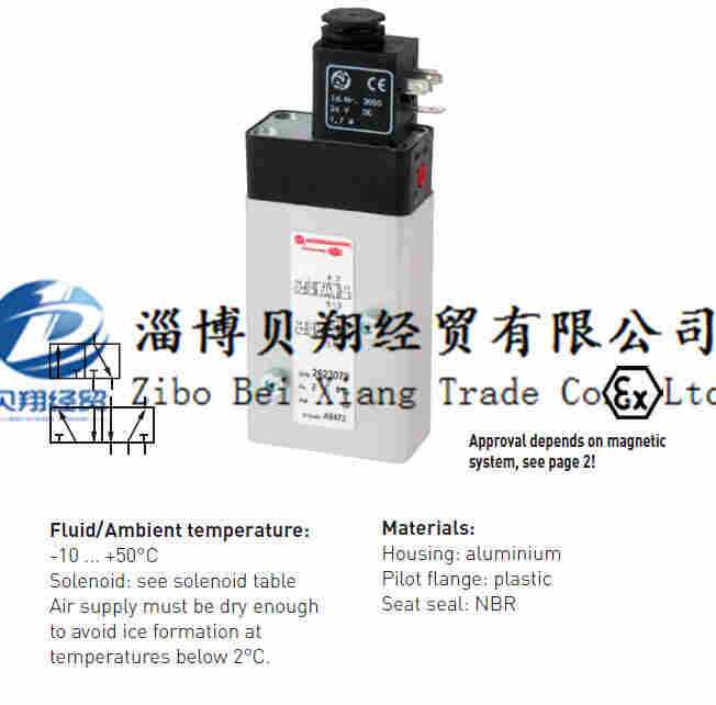 BUSCHJOST宝硕----全系列两通流体阀,NORGREN/诺冠电磁阀2623079.3063.230.50 耐高温(200摄氏度),0-40bar吹瓶机电磁阀,集尘电磁阀,前进控制阀、电磁阀、减压阀,过滤器,各类气动手动阀门(德国)德国海隆HERION气动、液压、防爆电磁阀等全系 列产品,流量大,寿命长,用于电力、石化、冶金行业等要求比较高的特殊场合。HERION海隆是德国名厂电磁阀生产商,拥有优良设计技术及多年生产经验。是目前世界上为多专门行业设计特殊电磁阀厂家。TopAir系列是专为亚洲而设计,外型美观,价格廉宜,品质稳定。一向都是配套单位的.